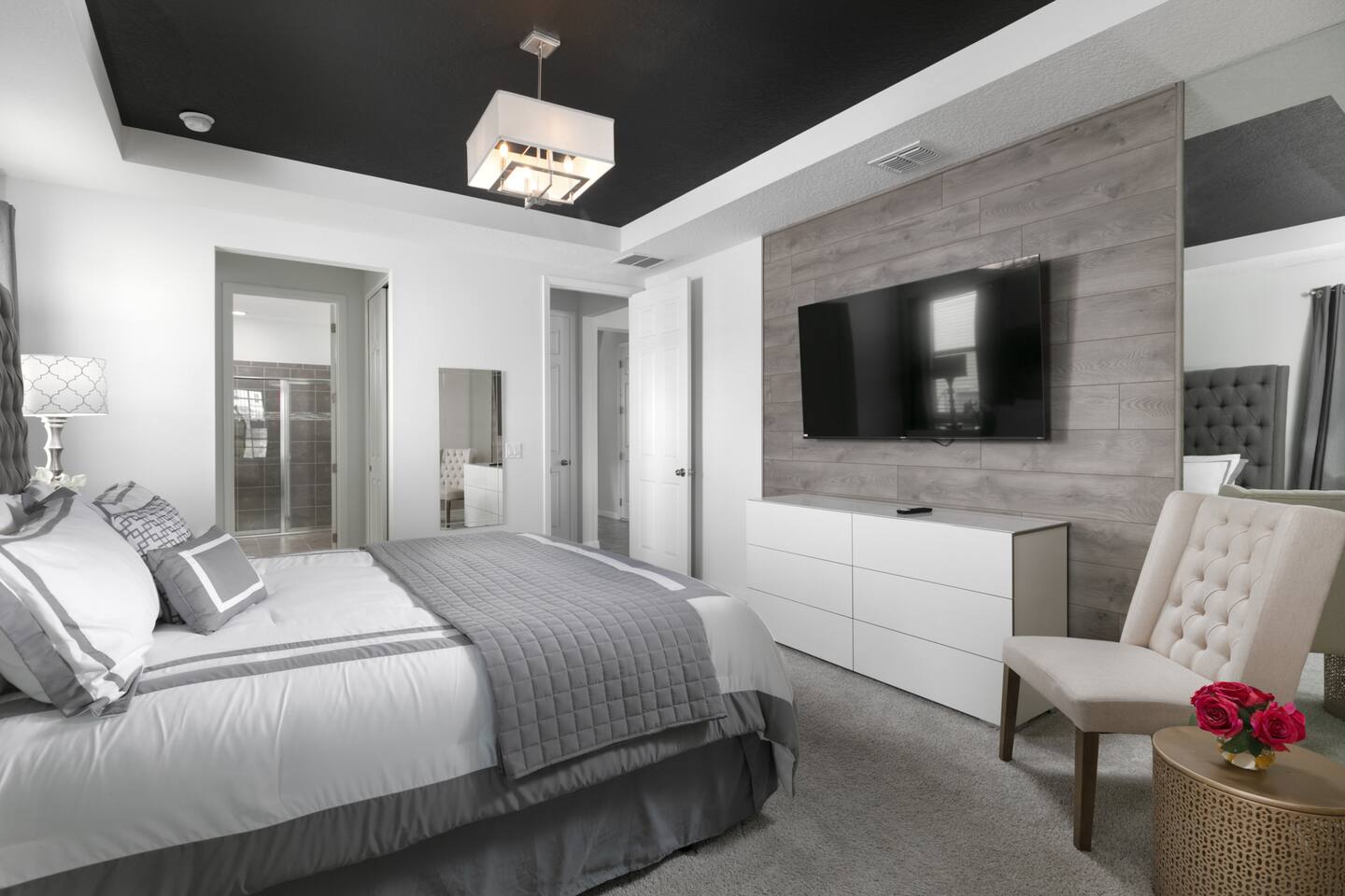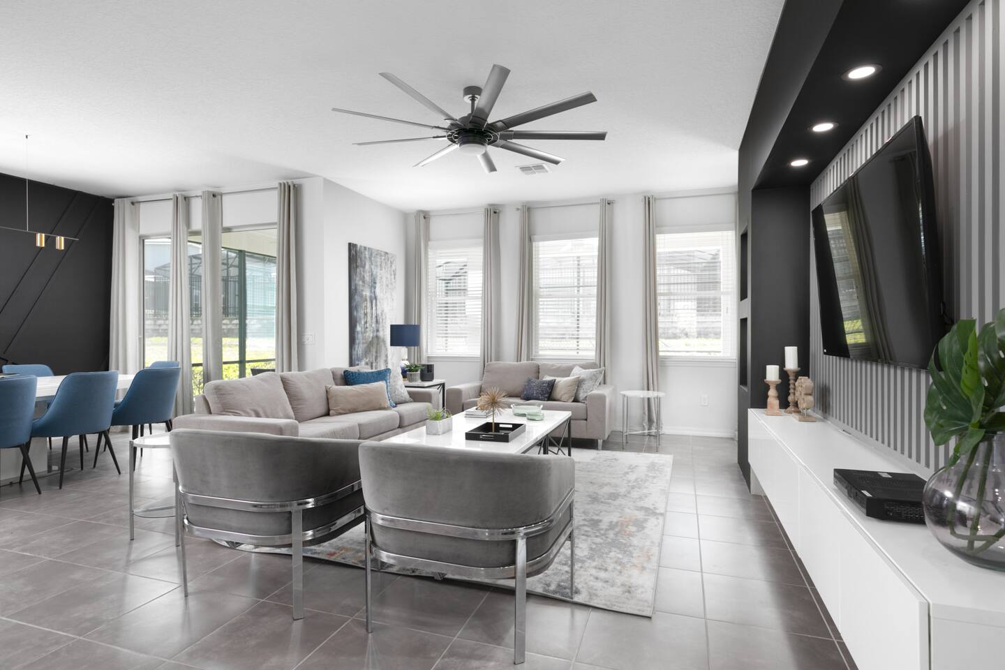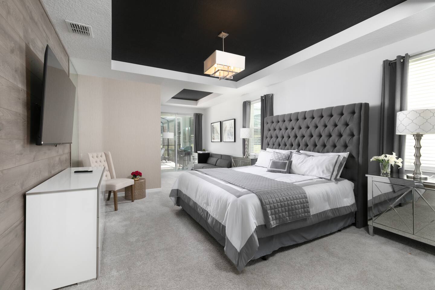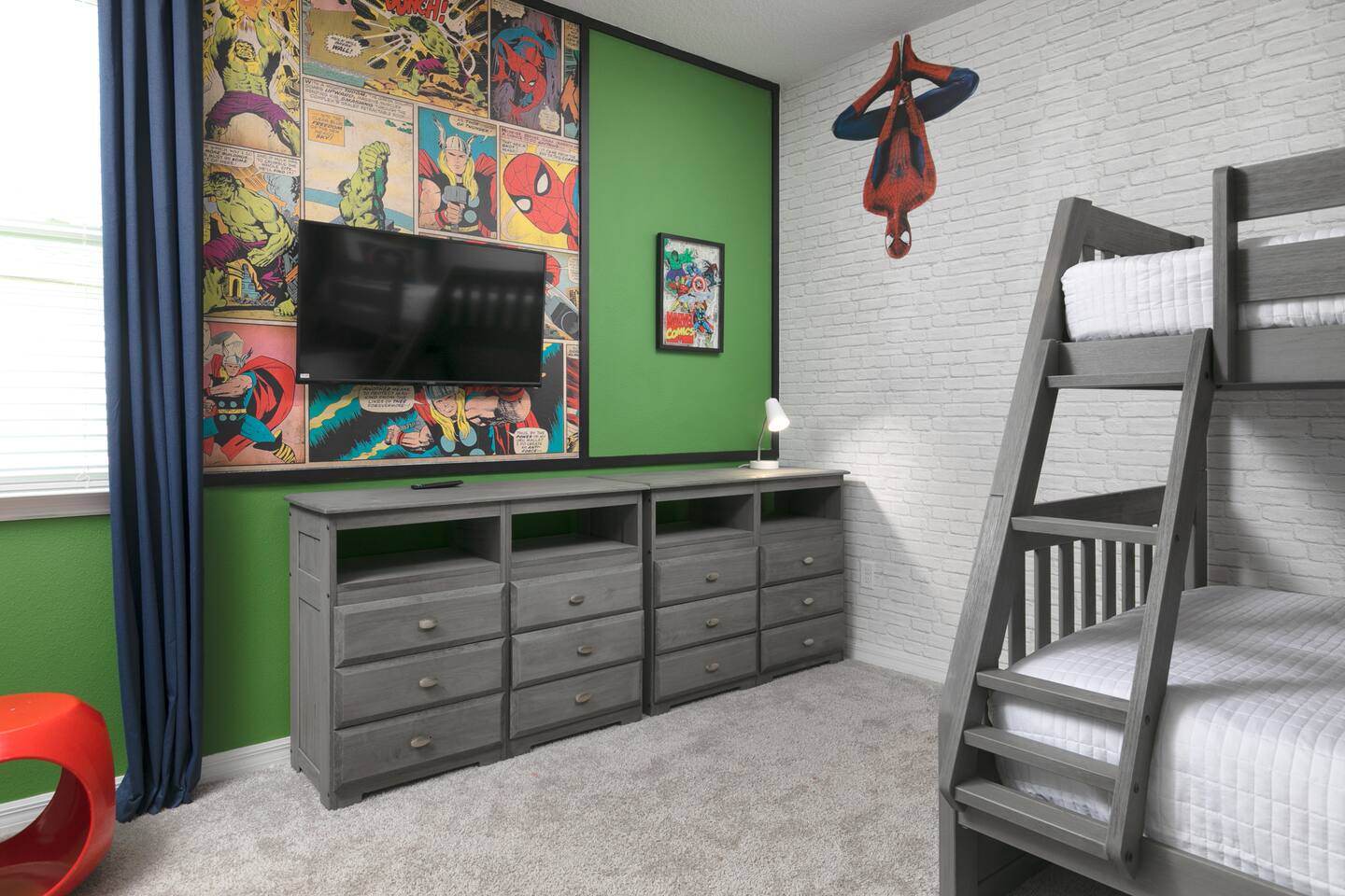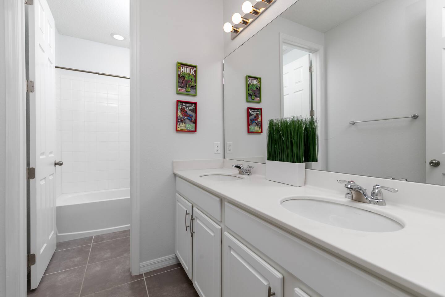 Designed by one of the best designers in the Orlando area, the Hollywood House accommodates both adults and kids alike. Fully renovated, EVERY room has its own unique theme whether just a chic look OR a popular theme. This house may not be for everyone but for those that like “well done” and being spoiled with amenities…this one is for you. Read on to understand why. This home is truly a FUN home with something for everyone. If you like to cook and/or grill, this home comes with a fully stocked kitchen and an outdoor grill (additional daily fee applies) so no need to wait for one to be delivered by an outside company. It will be there when you get there! Are you a movie buff? Experience our theatre room with a state-of-the-art sound system, plush seating and 70+ pre-loaded movies to pick from. How about hours of fun in the air-conditioned Arcade Room with all the popular arcade games you remember from years past and PS4? You also can enjoy our pleasant pool atmosphere or simply relax downstairs in the main living room, and pair your device to our Bose sound system for your enjoyment. Whether some in your group are looking for the “park scene” or the “stay behind scene”, this house will accommodate both agendas. If this isn’t enough… Solara Resort Club is open to our guests and has a state of the art surfing pool, kids play pool, everyone pool, restaurant, gym, outdoor bars, volleyball court, soccer field, and basketball court plus much more. Resort amenities, including clubhouse, pool, splash pad, and recreational facilities are managed by the HOA and maybe subject to temporary closures maintenance whether or limited hours without notice we are not able to guarantee availability. There are (2) King Suites on the first floor as well as (2) King Suites on the second floor. Themed rooms include: Avengers with (2) sets of Twin over Full bunk beds, Minnie Mouse themed room with (2) twin beds, and a Mickey & Friends bedroom with (2) twin beds. The adult rooms are identified by there unique style and a popular movie of the past. This home can sleep up to 16 people. The upstairs LOFT is where the brand-new THEATER is. The garage area was renovated into an ARCADE room featuring Pac Man, NBA Jam, Fast & Furious Super Bikes, 2021 Golden Tee Golf and Terminator Salvation. Log into your own PS4 account or use the games we’ve already downloaded. We LOVE our house and we hope you will as well. Here are some other amenities WE offer: • Fully stocked kitchen for dining plus toaster, blender, coffee maker etc. • Starter kit of Shampoo, bath soap, dish detergent, dish washer liquid, trash bags, paper towels • 3 rolls of toilet paper per bathroom • Use of washer and dryer • Outdoor Grill Available (additional fee applies) • Free Wifi • Clubhouse! • Owners that care about your experience Import things to note: ***We provide some basic house hold starter items to help get your trip started. Please note, for longer stays you may need to purchase additional supplies. We can heat the private pool and Hot Tub for 38$ a day. We can provide access to a propane grill for 12$/day. Important Rules: -This is not a party house, quiet hours will be strictly enforced. -Do not move any furniture or appliances. Nothing is to be moved or modified in the home. All persons MUST BE 25 years of age or older to stay in this property (this does not include children and young adults accompanied by their parents).